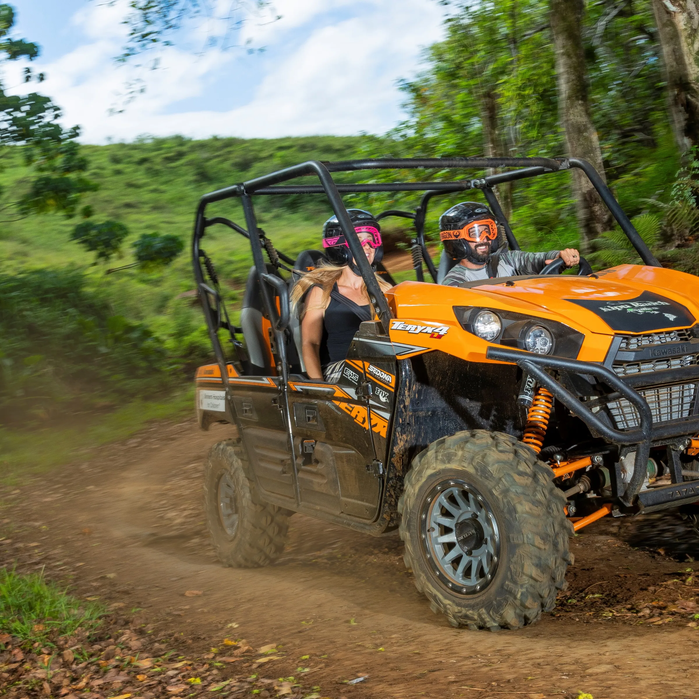 Kipu Ranch is a 3,000 acre property extending from the Huleia River to the top of Mt. Haupu. It is home to many movie sites and wildlife! The ranch has seen many changes through the years, from a sugar plantation to the working cattle ranch it is today. Kipu Ranch is a private ranch – not accessible to the general public. Ride through the ranch on your very own premium Kawasaki off-road vehicle! All tours are guided scenic tours with a classic stop-n-go flow full of history, culture, movie locations and aloha. Come and let us share some of Kauai’s hidden beauty with you and your family.